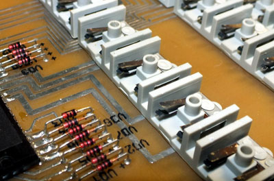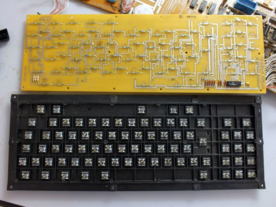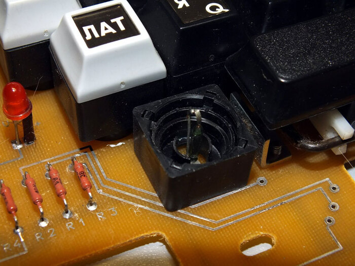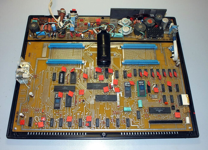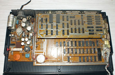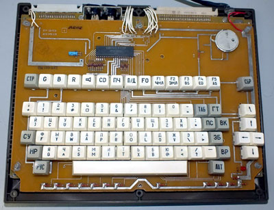 Процессорная плата ПК8000: используется тот же приём, что и на многих других отечественных ПК – вместо 2-х микросхем ПЗУ ёмкостью 8 Кбайт (или одной на 16 Кбайт) применяются значительно менее дефицитные 2-килобайтные в количестве 8 штук (а вот чипы ОЗУ используются наиболее подходящие — 8 килобайтные, они установлены на плате видеоконтроллера)