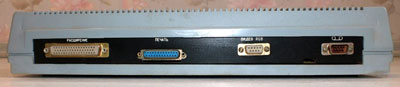 Сзади у ПК8000 выведено целых два разъёма системной шины, что указывает на широкие возможности для расширения; присутствуют также параллельный порт для принтера, разъёмы для магнитофона и телевизора. Как видим, используются далеко не самые красивые и современные разъемы (точно такие были и в технике 60-х–70-х годов выпуска), что заметно портит внешний вид ПК; правда, учитывая применение подобных разъёмов в профессиональной и военной технике, есть все основания считать их вполне качественными и надёжными