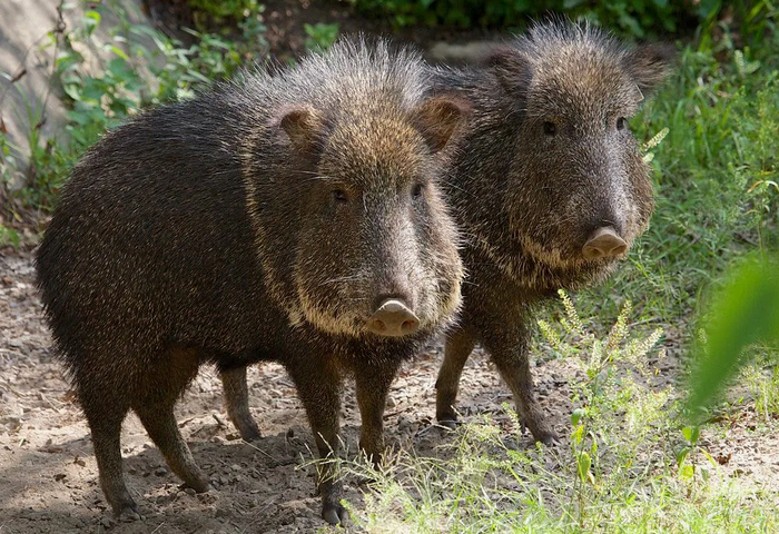Ведь перед вами вовсе не кабанчик, а ошейниковый пекари. Эти забавные копытные внешне действительно напоминают свиней, но при этом существенно от них отличаются и являются всего лишь их дальними родственниками, отделившись от свиней около 50 миллионов лет назад. Ошейниковый пекари в своём семействе не одинок – их таких свиновидных несвиней целых 3 вида, расселившихся по обширным территориям Центральной и Южной Америк.