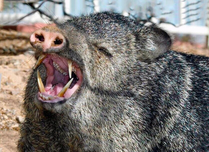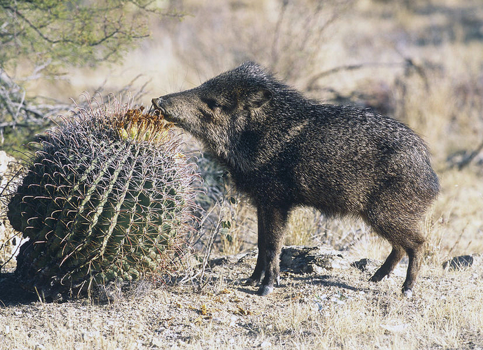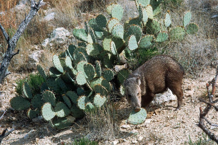 Зато такие челюсти и клыки позволяют пекари с лёгкостью поедать жёсткую растительную пищу, вроде кореньев, орехов и да – кактусов, в изобилии растущих в некоторых зонах его обширного ареала.