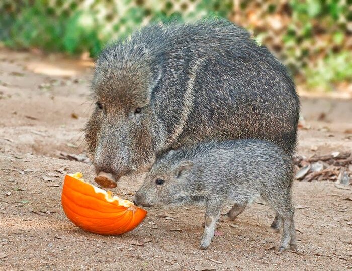 Но мощный у пекари не только желудок – он и сам животинка удивительно крепкая. Не даром слово «пекари», заимствованное из языка бразильских индейцев тупи, переводится на русский как «зверь, проделывающий много дорог в лесу». Продираясь сквозь густые леса, псевдосвинки молотят на своём пути всё: корни, луковицы, орехи, грибы, фасоль, ягоды, листья и траву. А если не наелись, то вполне могут отправиться разорять сельскохозяйственные угодья.