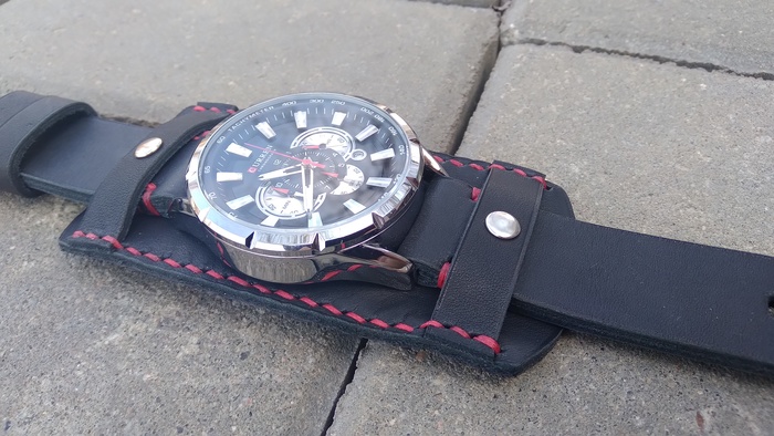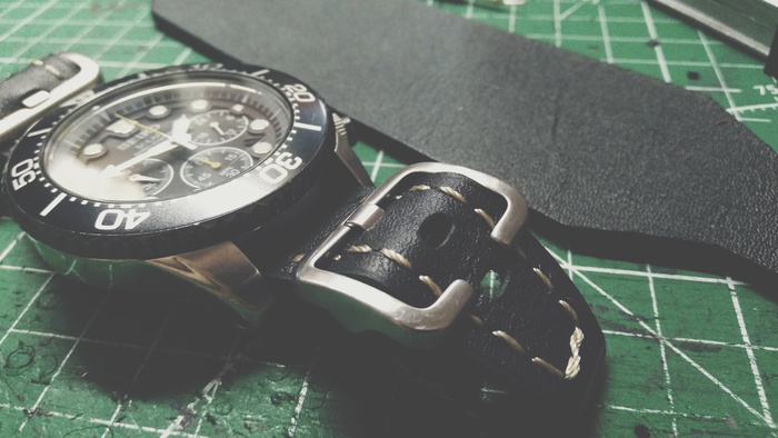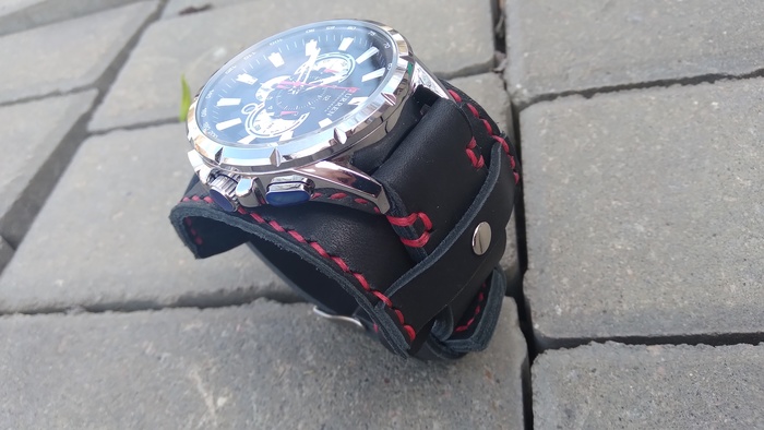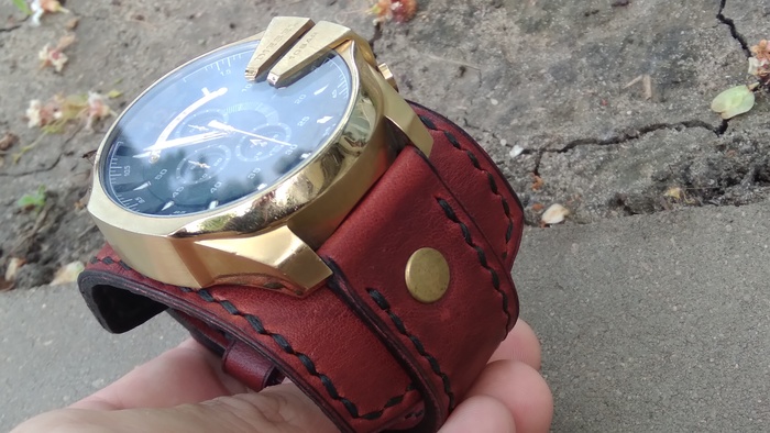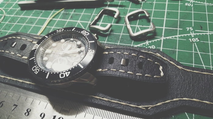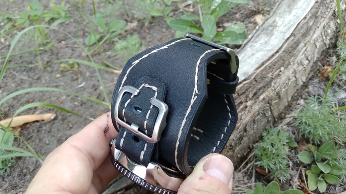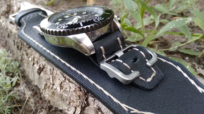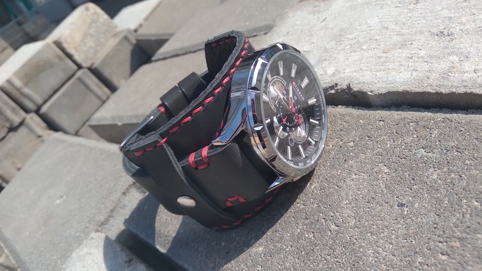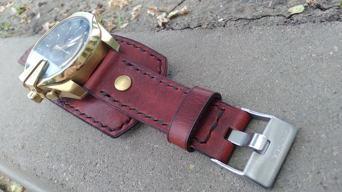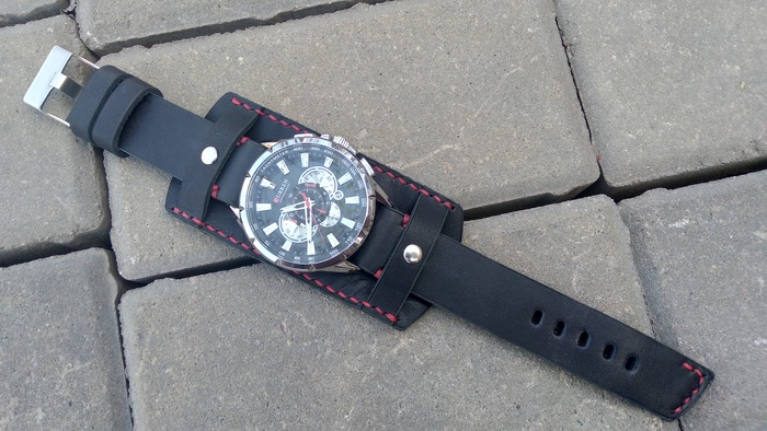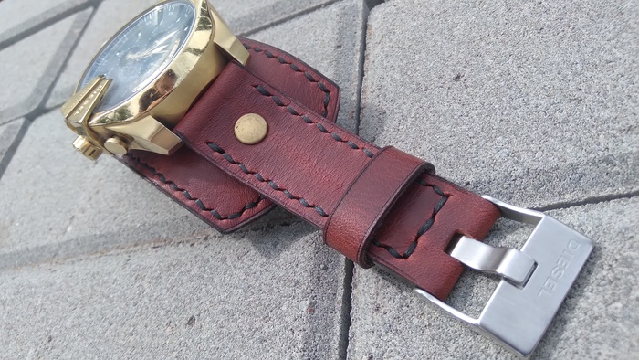 В общем притаранили старый ремешок от часо guess и попросили сделать ремешок для часов seiko. Напульсник, чуть шире обычного, так часы широкие. Здорово то, что крепления часов и пряжек 20 мм. и не пришлось вырезать переходы с размеров, как на гессах.