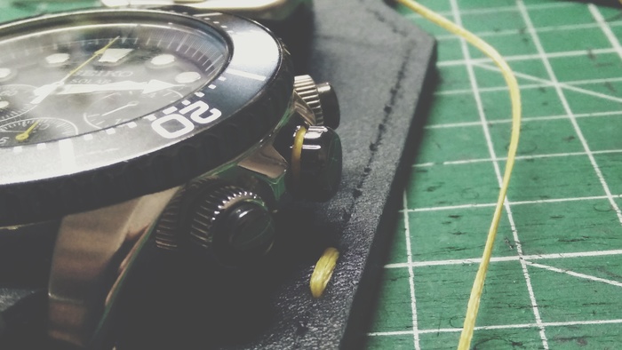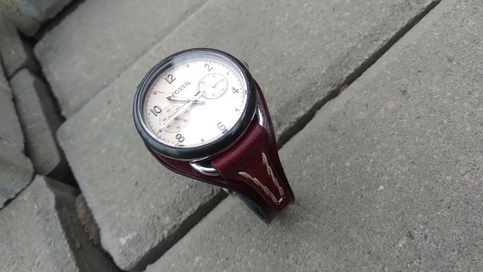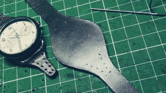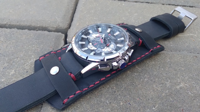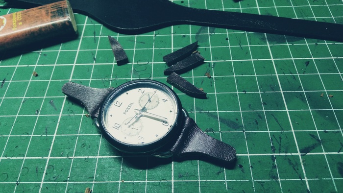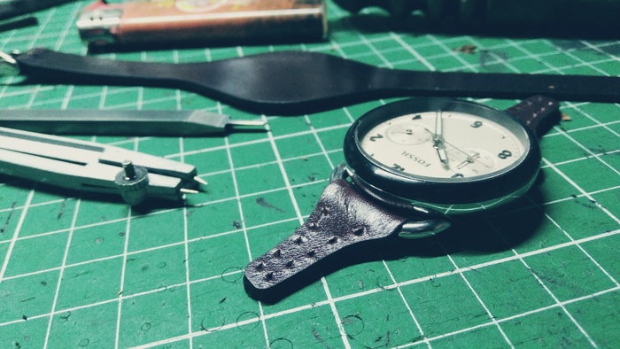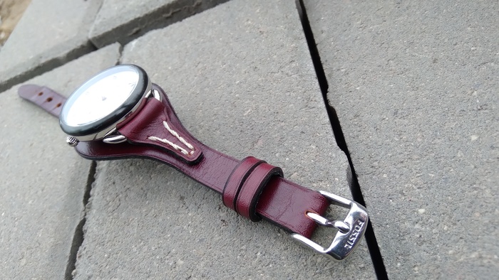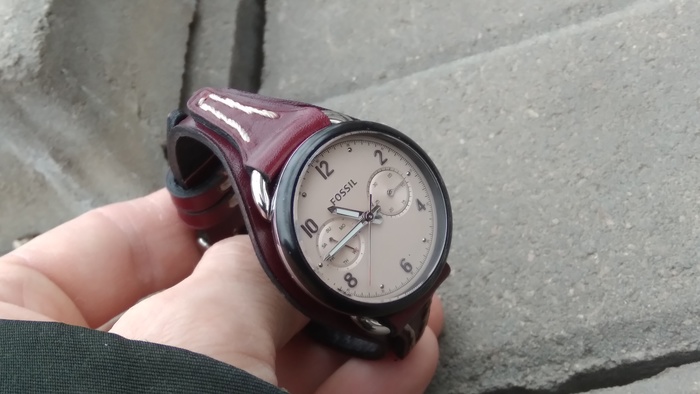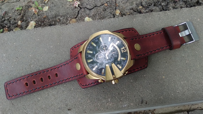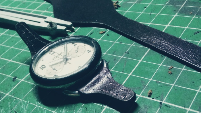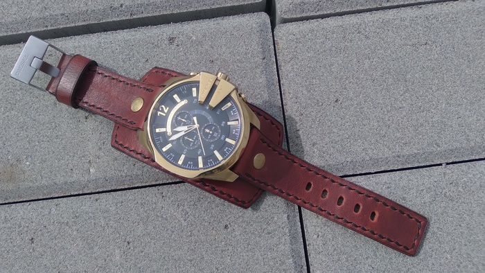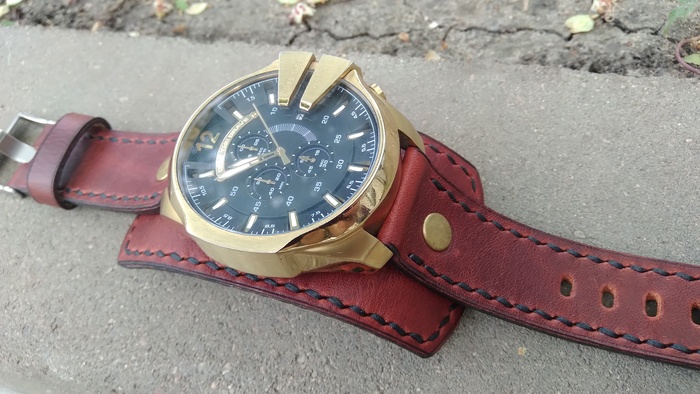 В общем притаранили старый ремешок от часо guess и попросили сделать ремешок для часов seiko. Напульсник, чуть шире обычного, так часы широкие. Здорово то, что крепления часов и пряжек 20 мм. и не пришлось вырезать переходы с размеров, как на гессах.