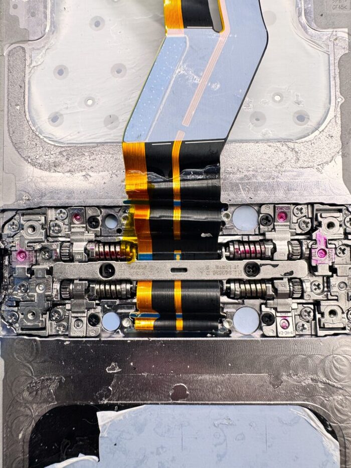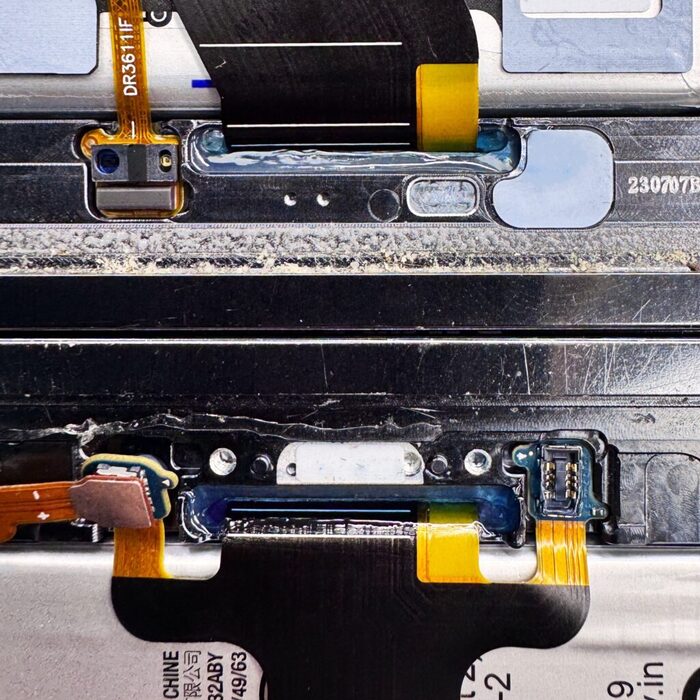 Кстати шарнир в идеальном состоянии у всех трех, так что даже чистка шарнира не требуется. В то время как во всех самсунгах куча мусора на сгибе, поэтому мы сразу при ремонте всех самсунгов согласовываем чистку, в то время как на двухлетних ванпласах шарнир как из магазина и ни одного разорванного шлейфа. Вот могут же делать когда захотят)