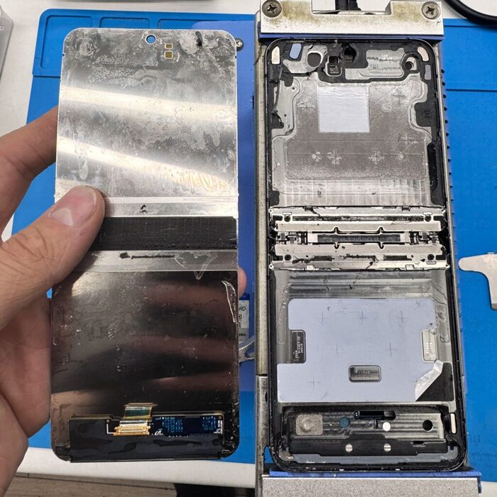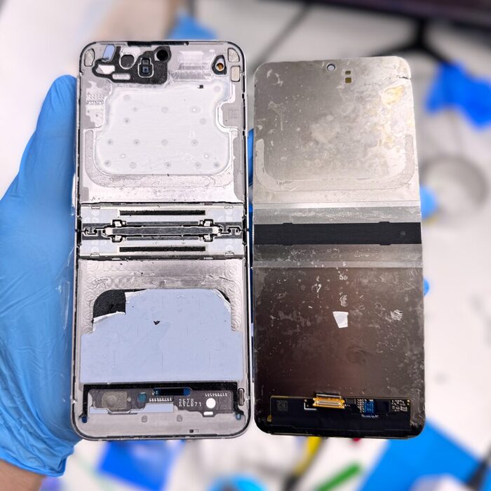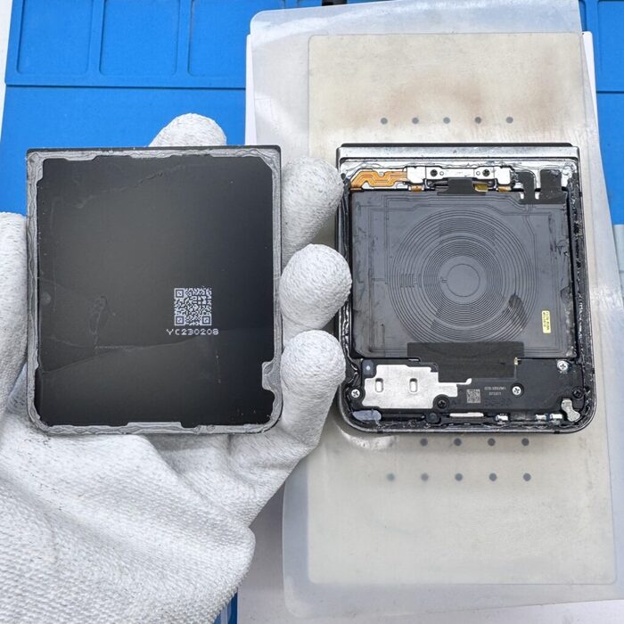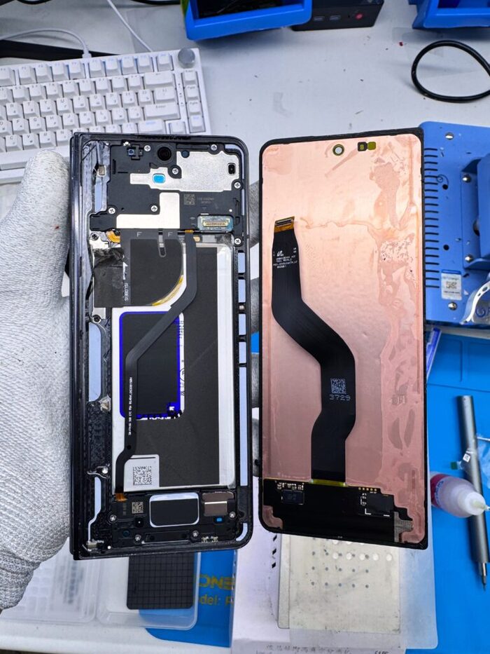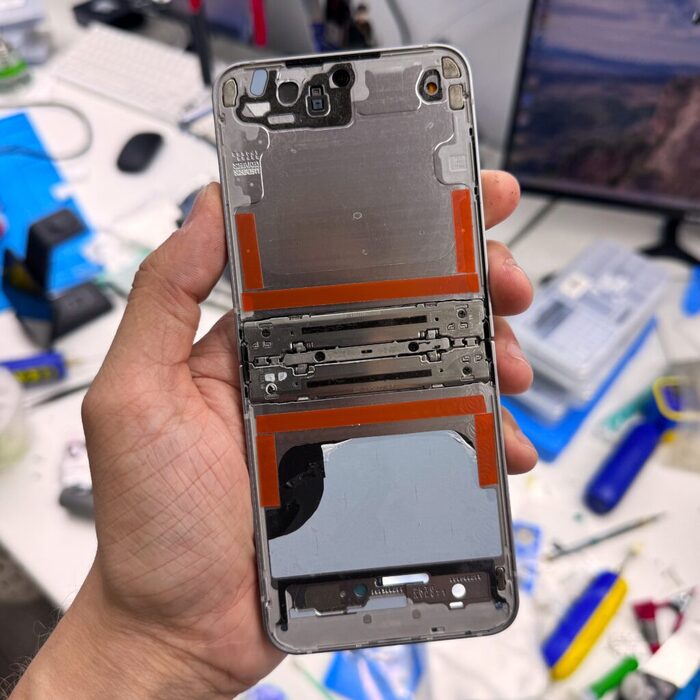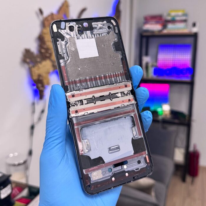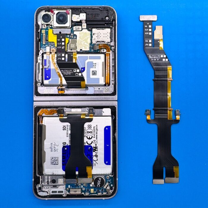 Внутренний и внешний дисплей подключаются одним шлейфом к одной субплате, что после самсунгов, которые требуют разборки всего телефона для отключения 3 шлейфов, — просто небо и земля. Сам господь как будто создал эти трубки для ремонта)