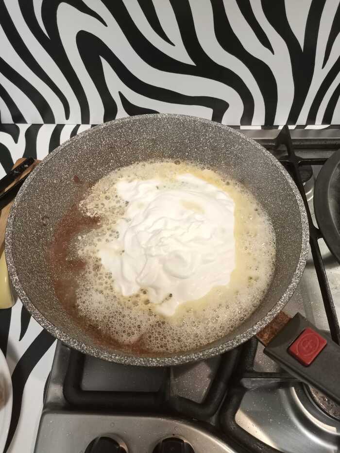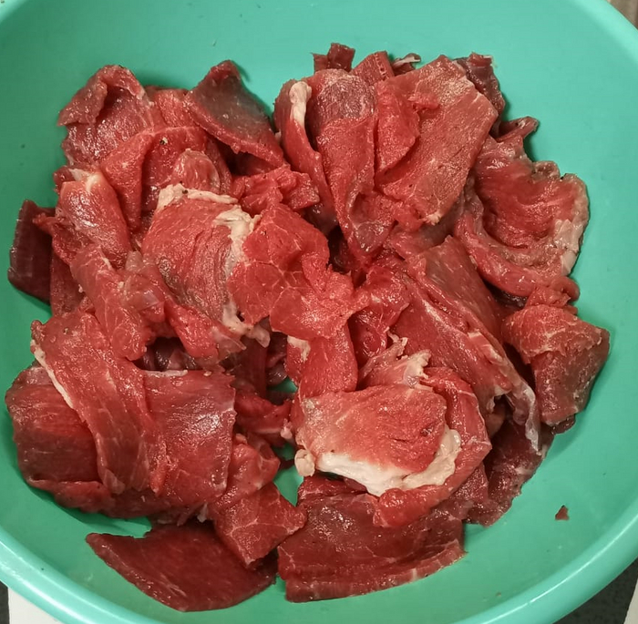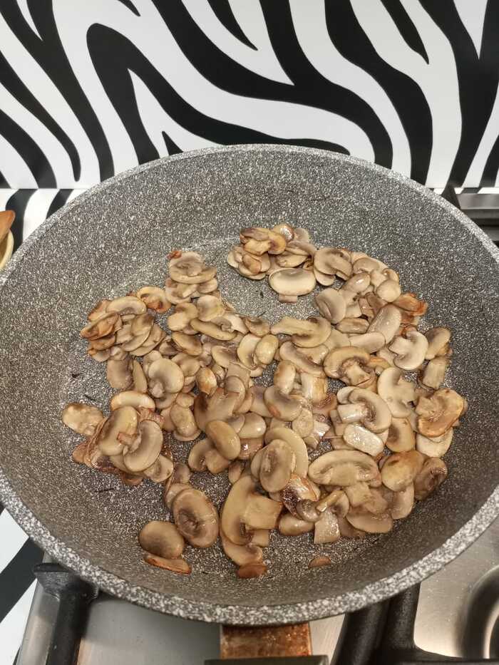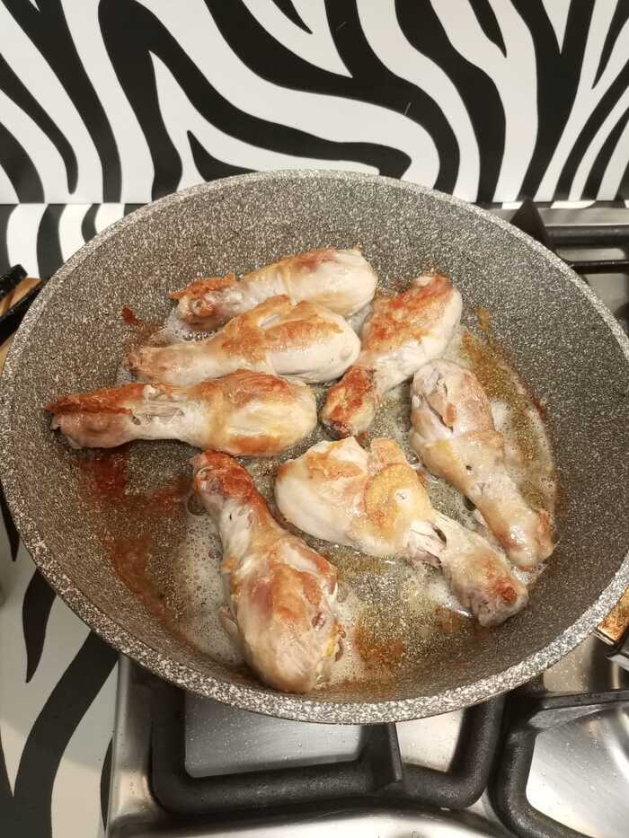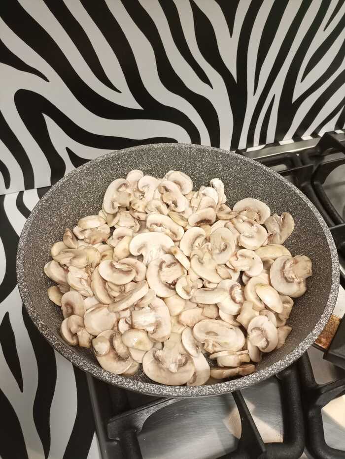 Дальше жарим мясо. На фото как ни странно получилось очень бледно, но на деле оно дольно неплохо обжарено.