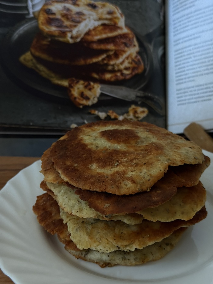 Берите по одному шарику из теста и полторы чайные ложки растительного масла зараз, так же раскатайте, пожарьте и уберите в духовку. Обратите внимание, что сковорода накапливает и удерживает жар, поэтому время приготовления одной лепёшки может сократиться до одной минуты. Подавайте лепёшки тёплыми и свежими.