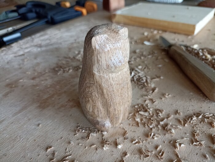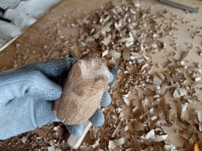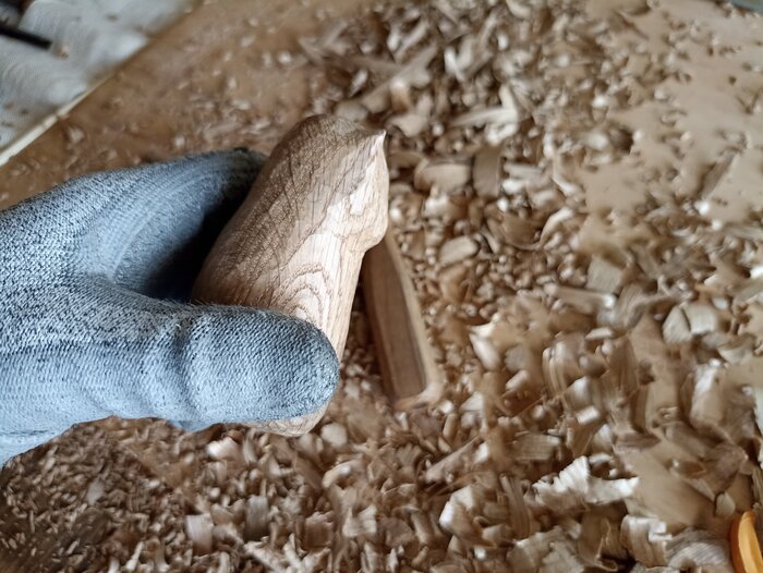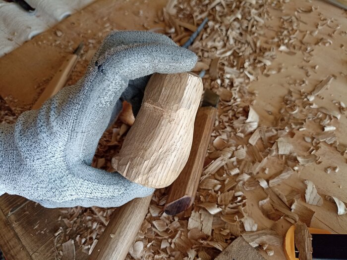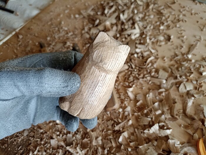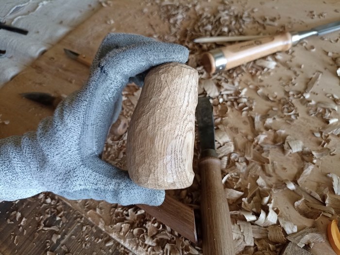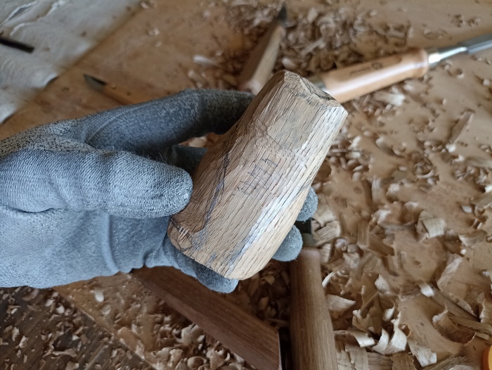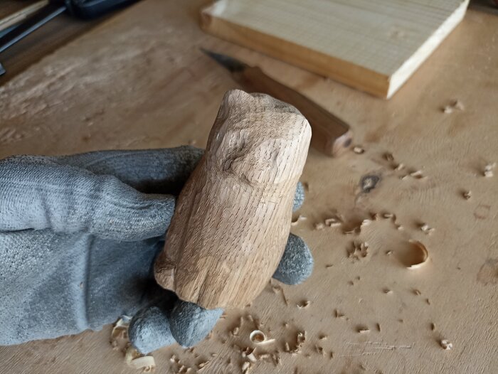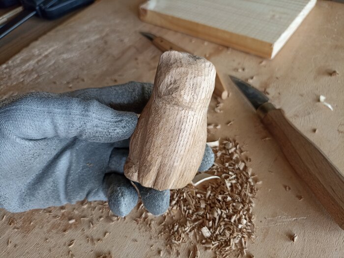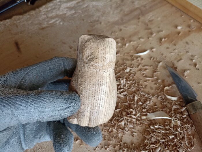 Для резьбы выбрал древесину дуба, как у меня бывает, когда режу первый раз, беру дерево попроще/кривее/некрасивее. Тут был дубовый брусочек, очень перекошенный, к сожалению этот перекос "съел" большую часть мануловой упитанности.