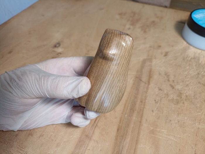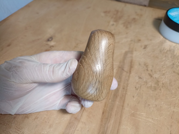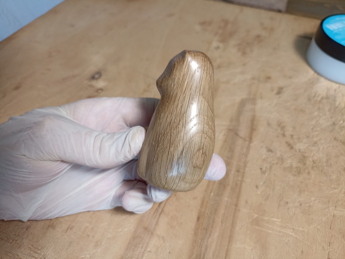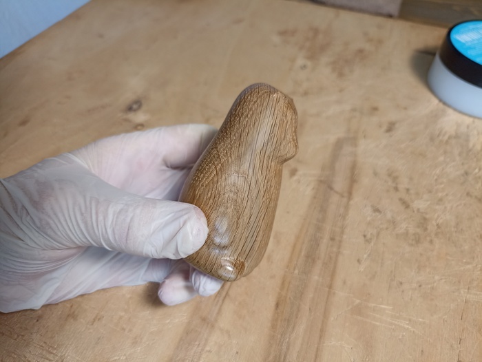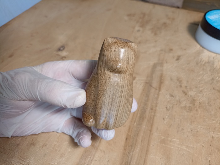 И получаем зашлифованную фигурку, которую покрываем крем воском OAK AFFECTION (там баночка стоит в углу)