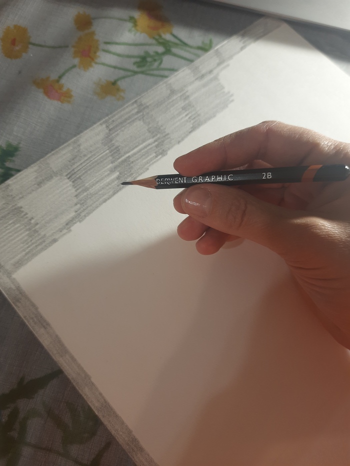 С обратной стороны эскиза я штрихую его плотно, но не очень мягким карандашом (В или 2В):