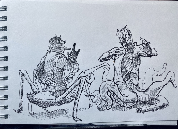 Создавались в онлайн рисовалке Garticphone , кроме 2го рисунка, его я дорисовал в "clip studio" уж очень нравился оригинал и хотелось его "зачетырекашить". Подобных рисунков куча, так что, если понравилось - дай знать, залью следующую партию :)