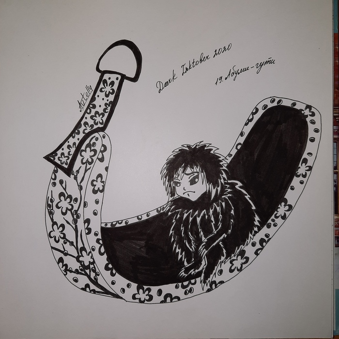 Первый был нарисован в начале апреля. Точнее скетч был готов еще в марте, но к 10 апреля я его добила. Лора у персонажа нет, возможно пока что. Просто демон. Использовался простой карандаш и черный линер 0,2.