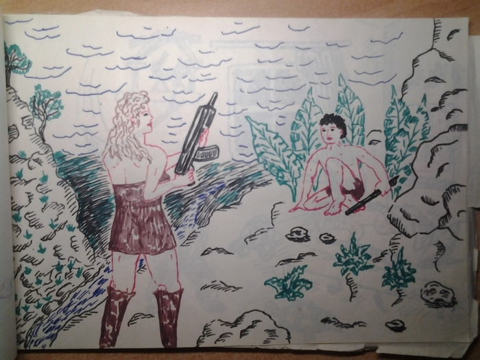 Мама мне тут альбом отдала,который с моей юности хранила,рисовал гдето в 92-94 годах.Аж прослезился,вот фантазия бурлила)))