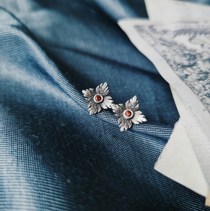 Серьги-листья, серебро, гранат