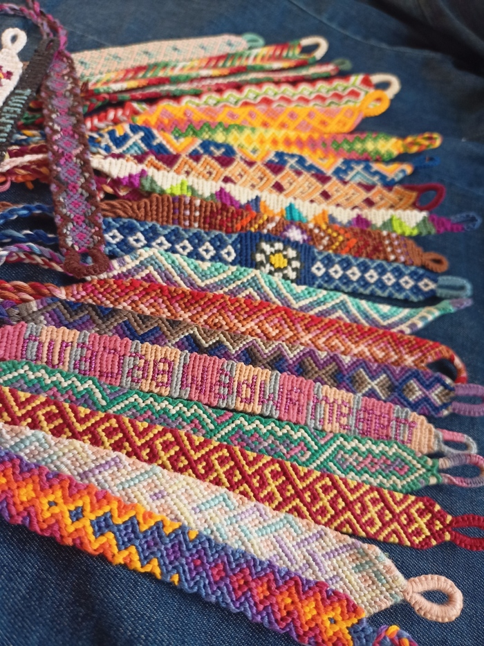 Средовая фенечка закончена. Подозрительно долго не могла ее доплести.