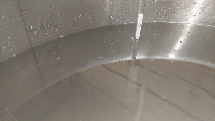 доливаю Холодной воды 7градусов со скважины до 95литров, размешиваю, замеряю плотность - 13, температура 28 - можно засыпать дрожжи.