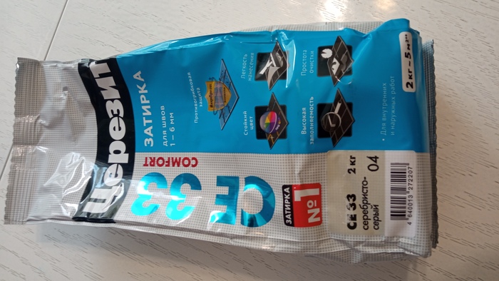 Для начала купили имеющуюся в строймаге затирку (спойлер: она ни разу не серебристая)