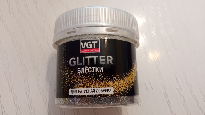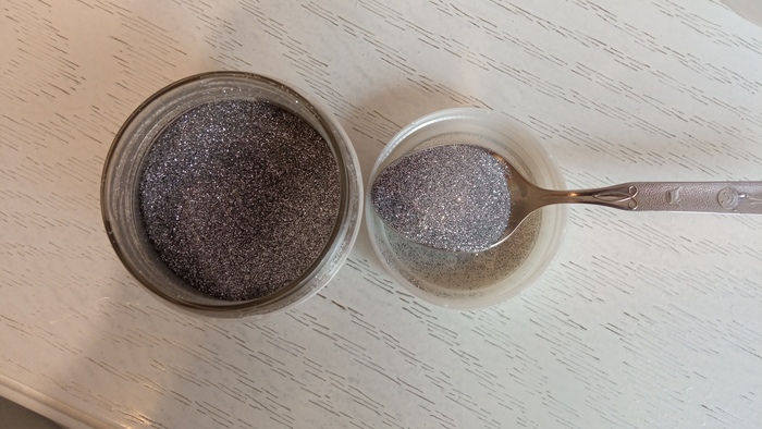 Затем отыскали блёстки (!), чтобы добавить их в раствор для большей серебристости. Вот такие: