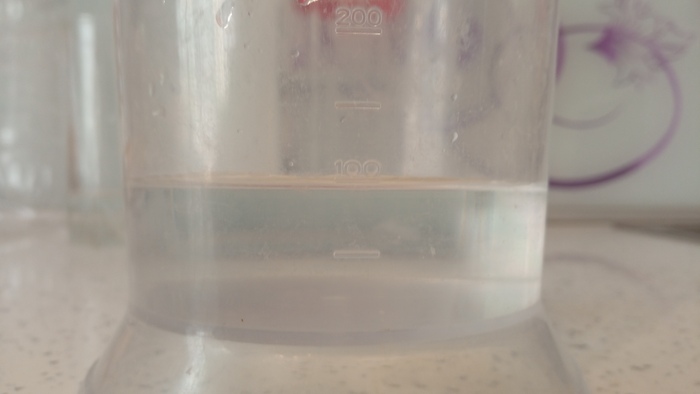 Налил в свободную тару воды и начал добавлять по одной десертной ложке (10мл) секретный ингридиент: