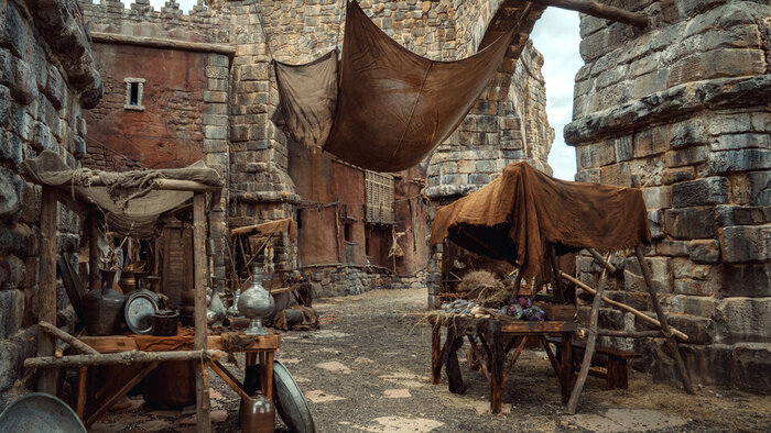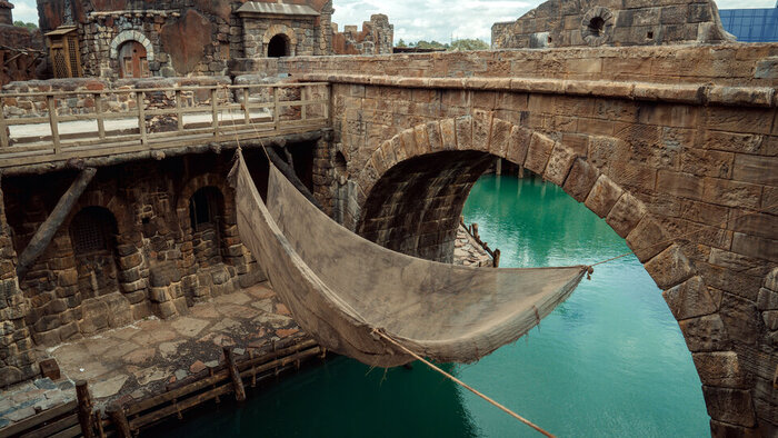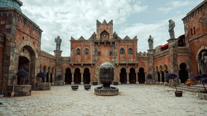 Безруков вообще немногословен: будет сериал, вот всё и увидите. Но зря мы, что ли, добирались в этот Арканар, спрятанный в Новой Москве в парке «Москино» среди полей, лесов и дачных поселков? «Москино» — эмбрион будущего московского Голливуда; места полно, возводи что угодно. Здесь уже отснят «Буратино», его итальянский город пока стоит, но вся жизнь кипит в Арканаре, где Средневековье в разгаре. Хотя не только Средневековье — внутри древнего города скрывается еще кое-что космическое.
