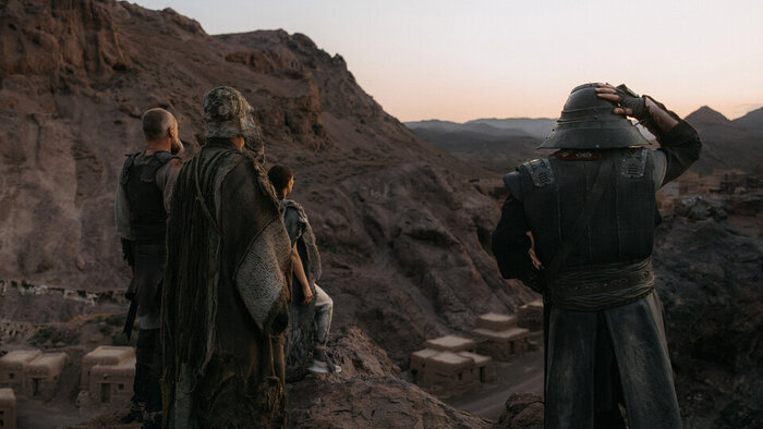«Мы сразу договорились о цветовой гамме, — объясняет художник по костюмам Варвара Авдюшко. — На этой планете нет зеленого цвета. Все такое выжженное, скрипящее на зубах». Внутри города есть пара чахлых деревьев — так вот они с фиолетовой листвой. Тюрин вообще к цвету придирчив: в фильме «Рубеж» 2017 года по его требованию раскрашивали вручную камни и землю — никаких этих «сделаем потом на компьютере».