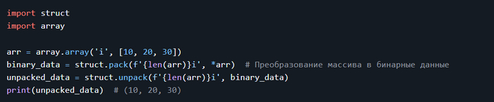 Этот механизм полезен при работе с файлами, сетевыми протоколами или бинарными форматами данных, где требуется передача числовых массивов в сжатом и эффективном виде.