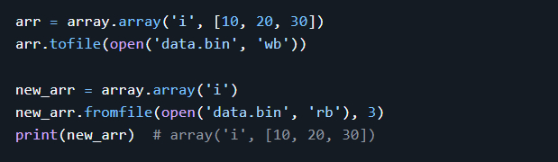 Если требуется хранить массив чисел в файле и быстро загружать его без избыточных преобразований, array.array значительно упрощает задачу.