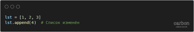# Создание кортежа my_tuple = (1, 2, 3, "apple", "banana") print(f"Создание кортежа: {my_tuple}") # Доступ по индексу print(f"Элемент по индексу 2: {my_tuple[2]}") # Нельзя изменить элемент # my_tuple[0] = 0 # Это вызовет ошибку: TypeError: 'tuple' object does not support item assignment # Нельзя добавить элемент # my_tuple.append(4) # Это вызовет ошибку: AttributeError: 'tuple' object has no attribute 'append' # Нельзя удалить элемент # del my_tuple[0] # Это вызовет ошибку: TypeError: 'tuple' object doesn't support item deletion