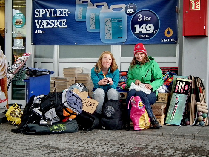 Природа Норвегии привлекает не только норвегов. Эти две девочки из Польши путешествуют по Норвегии автостопом.