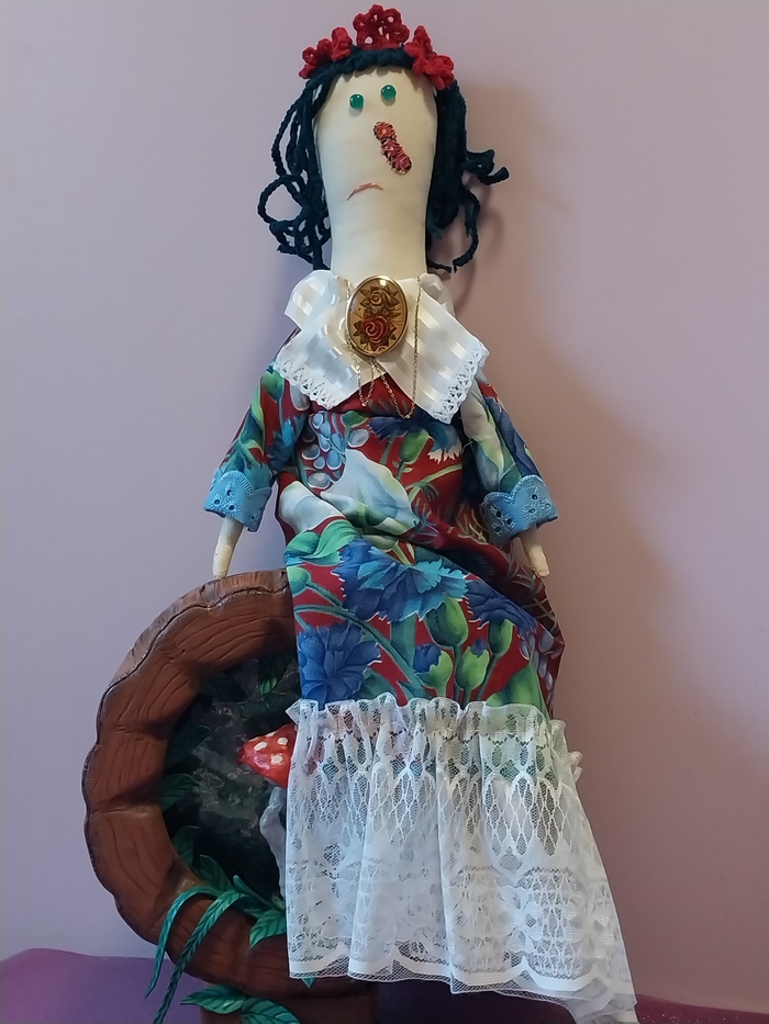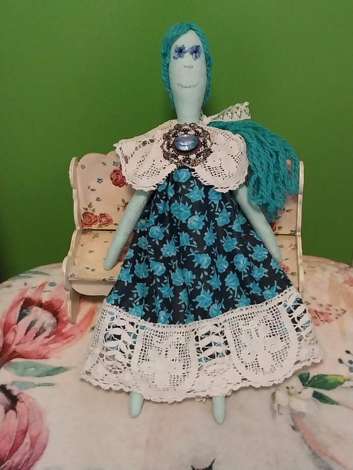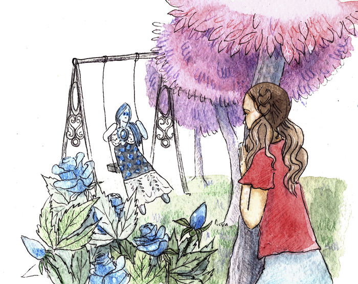 И в третий раз снится Василине сон. Идёт она неторопливо среди густого сада с голубыми пахучими розами. Очень много роз и изредка диковинные деревья с серебристыми стволами и нежными розовыми листьями. Свернув на очередную дорожку, вдалеке она увидела качели, а на них медленно качается абсолютно голубая кукла. Голубая кожа, голубые волосы, голубые глазки, сделанные из тряпичных цветочков, и платье, сотканное из голубых роз, сплетённых с ночным воздухом. И только кружева на платье были белыми. Большой белый воротник украшала серебряная старинная брошь с потрясающим сапфиром.