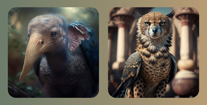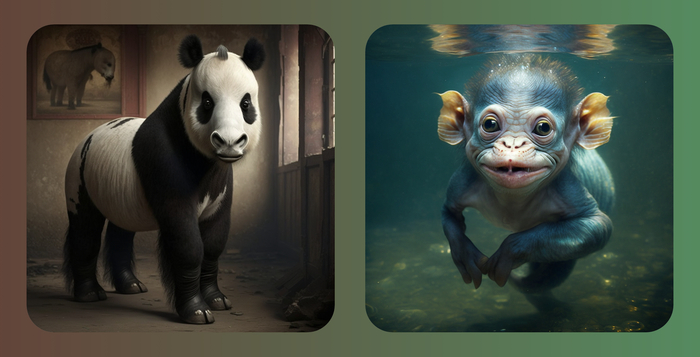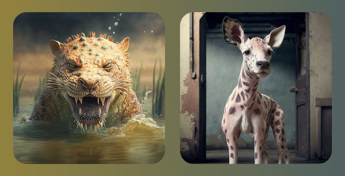 По порядку: Кротигр, Пингвящер, Пандошадь, Обезьокунь, Слоноптица, Гепардорел, Кроколев, Жирафабака