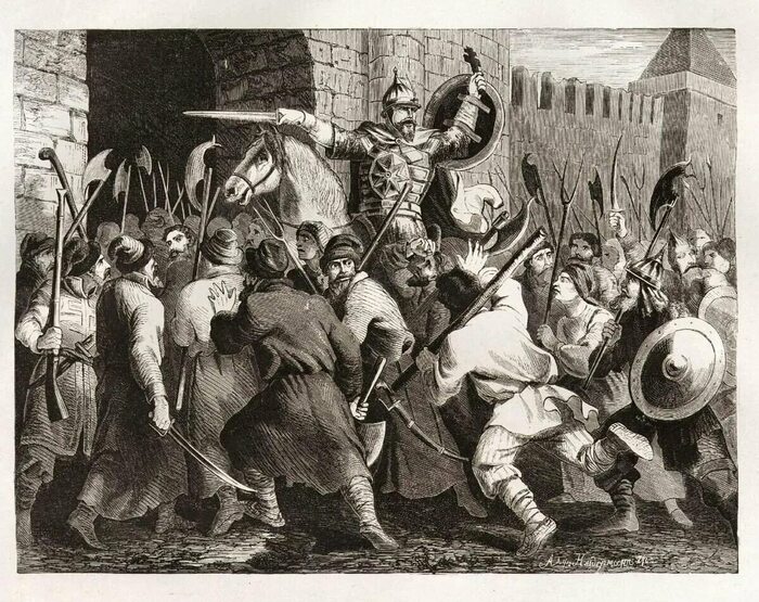В довершении всех бед, обрушившихся на страну, в начале 1604 года из Речи Посполитой поползли слухи, что царевич Дмитрий жив. А чуть позже было перехвачено письмо одного иноземца из Нарвы, в котором объявлялось, что у казаков находится чудом спасшийся Дмитрий и Московскую землю скоро постигнут большие несчастья. 16 октября 1604 г. Лжедмитрий I, о личности и походе которого речь пойдет в следующей части, с горсткой поляков и казаков двинулся на Москву. Однако в январе 1605 года отправленные Годуновым войска в битве при Добрыничах разбили самозванца, который с немногочисленными остатками своей армии был вынужден уйти в Путивль.