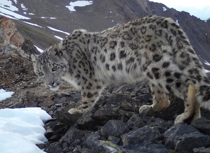 В Алтайском заповеднике в этом году автоматическая камера, установленная на хребте Шапшал, сняла проход нового снежного барса 26 мая 2025 года. «Барс не идентифицирован и вероятно пришёл со стороны Республики Тыва», - говорит Сынару Трифанова, ведущий научный сотрудник Алтайского заповедника.