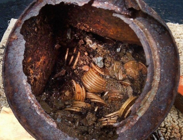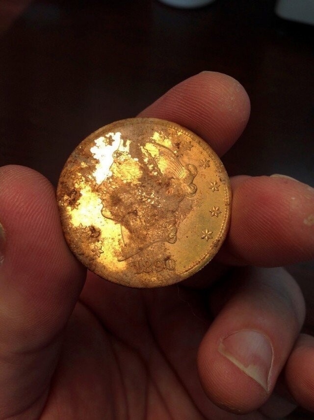 Сквозь повреждения саркофага под светом фонарей явственно блестело золото.
