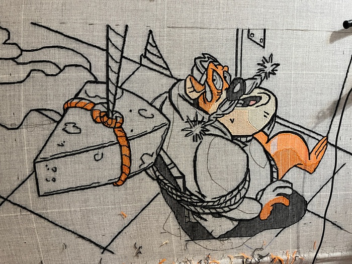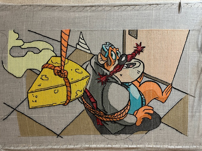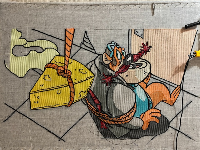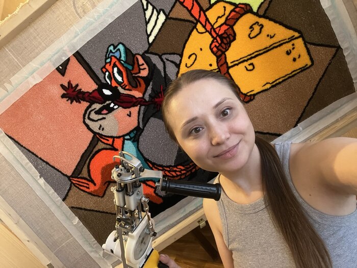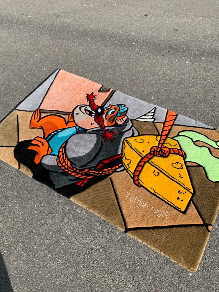 Рассказываем о создании ковра ручной работы с интересным сюжетом :) Рокфор (также Рокки) — австралийский мышонок отряда Спасателей из мультсериала «Чип и Дейл спешат на помощь».