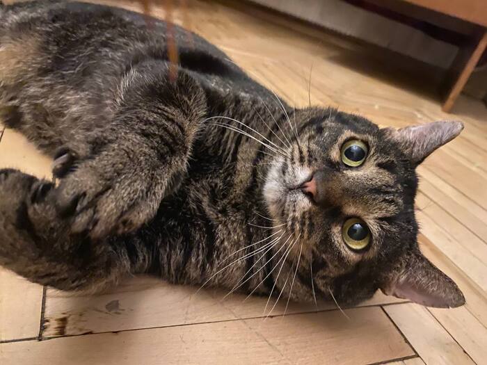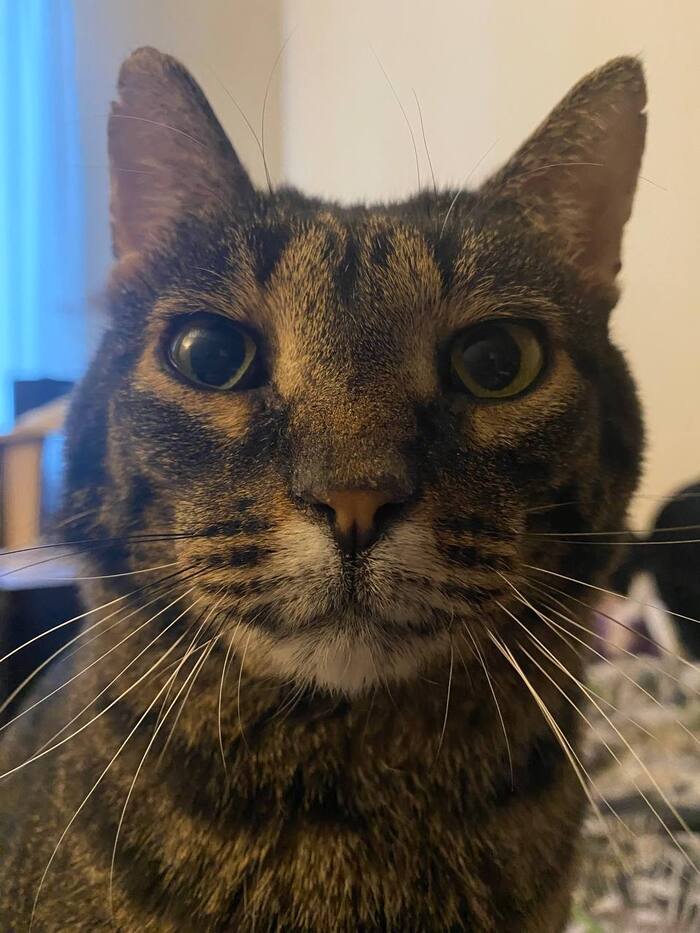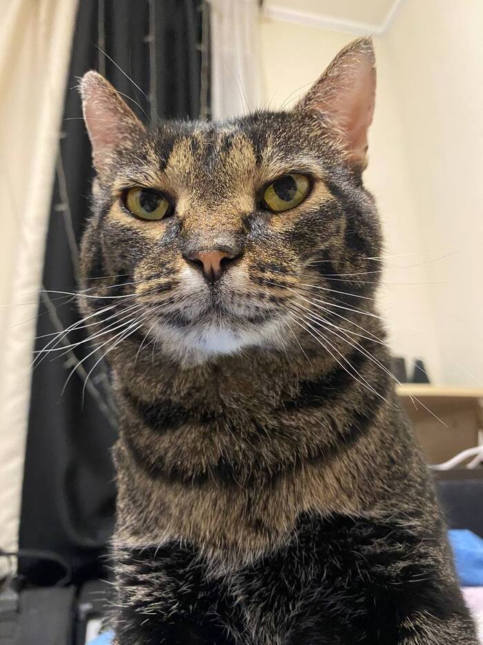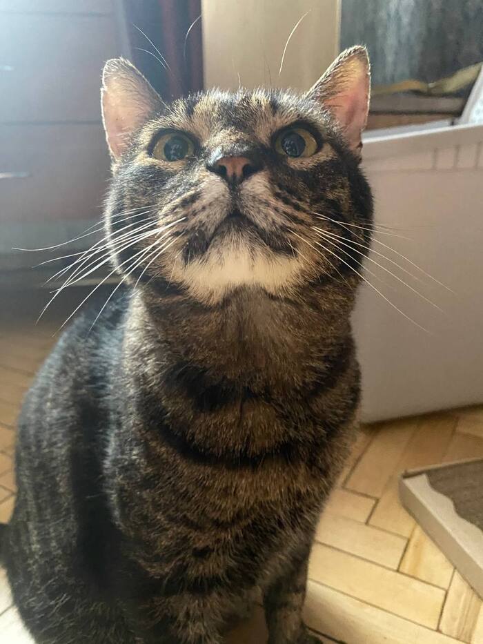 Кот с пронзительным взглядом и бесконечным запасом ласки. Его сложно поймать для фото – как только видит человека, то сразу бежит гладиться 🙂