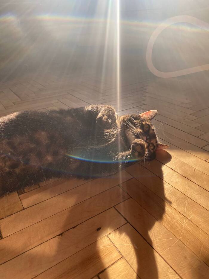 Почти сразу после переезда у Шпротика обнаружился лишай. Новая передержка не испугались, и мы взяли ситуацию под контроль и начали лечение под руководством дерматолога Гетманской. Сейчас всё идёт хорошо, но впереди повторные анализы и консультация дерматолога, чтобы убедиться, что болезнь окончательно отступила.