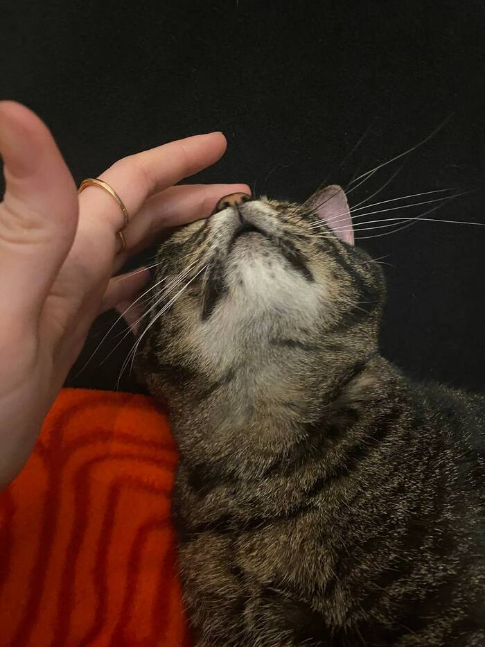 Несмотря на всё это, Шпротик остаётся невероятно ласковым и нежным котом. Он обожает, когда его гладят, и с удовольствием урчит, обтирая щечки о человеков. Ему сейчас нужна поддержка, чтобы он скорее почувствовал себя лучше.