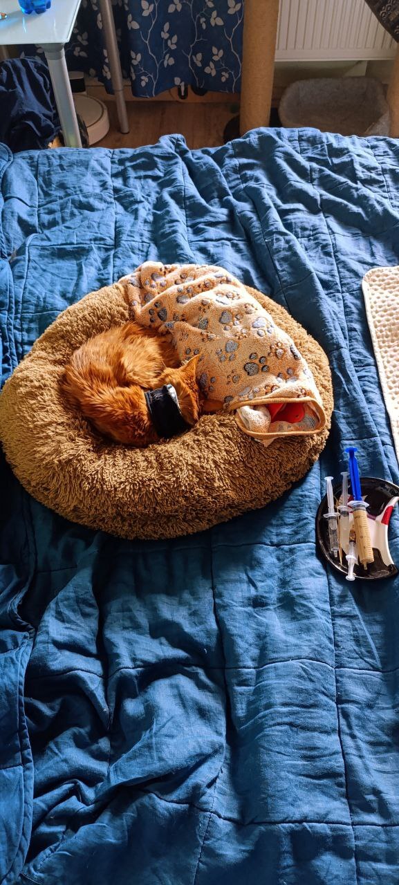 У Барсика хбп 3 стадии (предположительно), что так же не помогает ему восстанавливаться, но он очень старается. Вчера мне написали из стационара, что он стал активнее, взаимодействует с персоналом и вообще начал даже ругаться, что его не кормят по первому требованию!