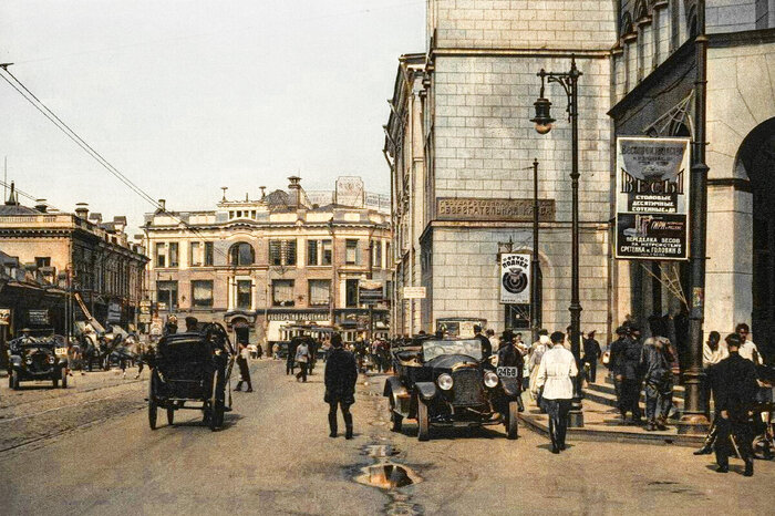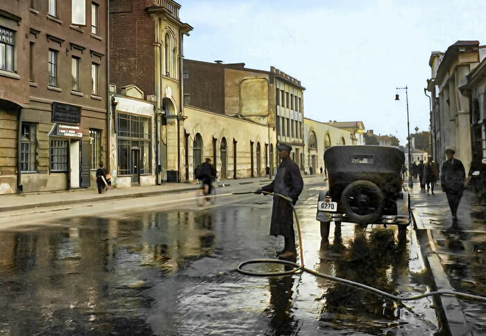 Поливальная машина на Советской площади, 1936 год.
