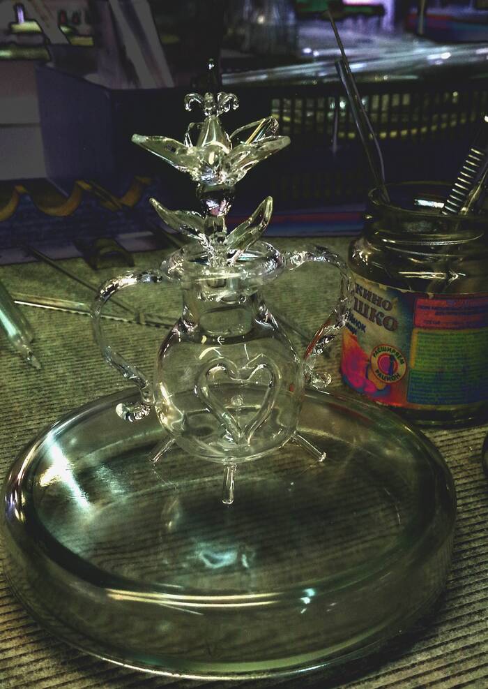 Кварцевые сувениры. Авторские работы. Когда-то давно, я пришел в стеклодувный цех. Увидев эту сложную, но очень увлекательную и интересную профессию, стал учиться. Цех был производственный и выпускали в основном промышленные изделия. Через 4 месяца упорного обучения мне удалось сделать и сдать годный высокотехнологический прибор, тогда и зародилась идея делать разного рода сувенирные изделия. Сначала мастера показывали фигуры, которые повторялись и копировали друг друга, но человеческому мышлению нет предела. Постоянно я стремился что-нибудь придумать, в голове крутилось много вариантов, как сделать ту, или иную фигурку. Вот так и получилось кое что собрать в это видео.