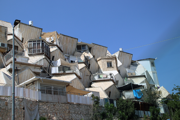 В начале становления в Израиле были модны идеи сионизма и молодой Цви загорелся идеей построить современнейший квартал для ультра-ортодоксов. Вот так эти дома выглядели тогда.