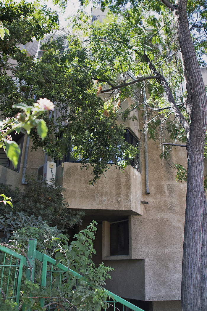 Дом по адресу Тель-Авив, Трумпельдор, 2 стоит в нескольких десятках метров от моря. В одном ряду с гостиницами. Идея дома родилась из фантазии архитектора Цви Хареля, который, судя по всему, вдохновился рисунками голландского сюрреалиста Эшера. Ну того самого, который рисует перевернутые лестницы и бесконечно-невозможные рисунки. В итоге получилось нечто с окнами во все стороны, балконами всех форм и размеров, этажами разной высоты, треугольниками и прямоугольниками декора и названием "Общая вилла".