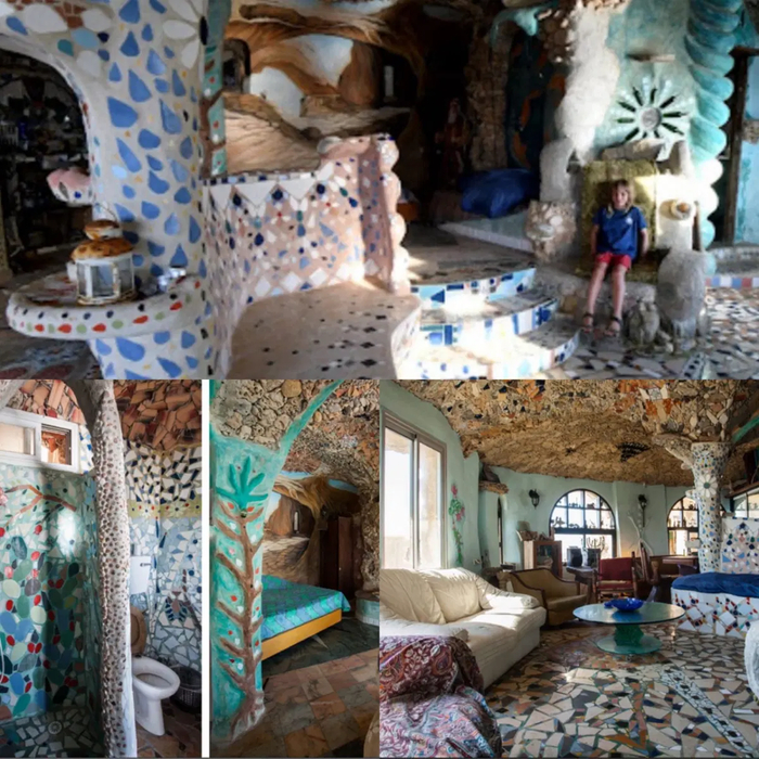 Дом построил и прожил в нём 40 лет Нисим Кахлон. Строил, как говорится, из говна и палок. А так же ракушек, камней, глины и осколков стекла.