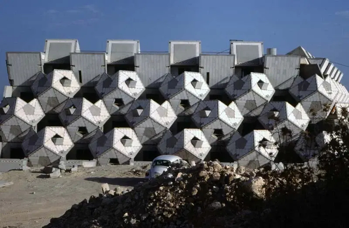 Дом Дубинера, или Шестигранный Дом, детище, как ни странно, всё того же Цви Хекера из предыдущих постов. И расположен он прямо напротив Спирального Дома.