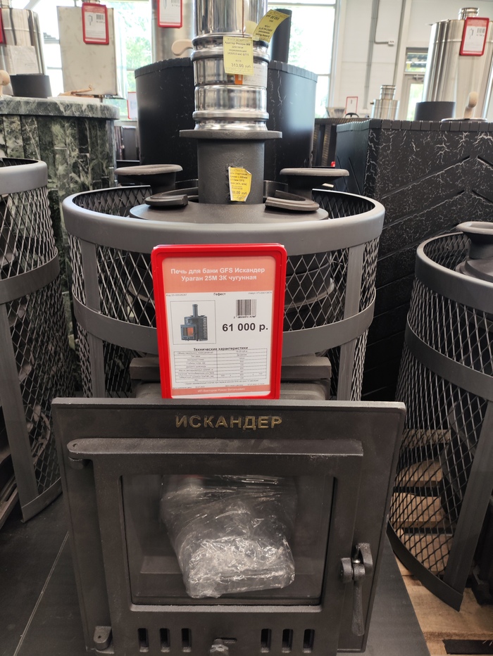 С выбором сердца бани я определился ещё на стадии обустройства фундамента.Вся площадь парной была посчитана,оставались нюансы в виде высоты потолков,которые бы и влияли на окончательную кубатуру помещения,под которую необходимо было подобрать определенную модель.Сьездив в магазин,ещё раз проконсультировался там и остановились на моделе Искандер Ураган от Технолита. Это была осень 2023 года.