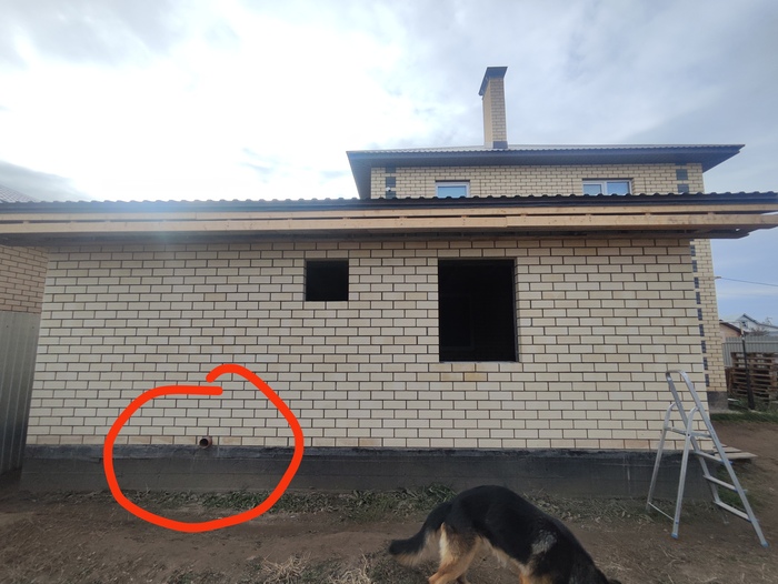 Во время строительства стен заранее позаботился о том,чтобы вывести трубу для поддува уличного воздуха под печь