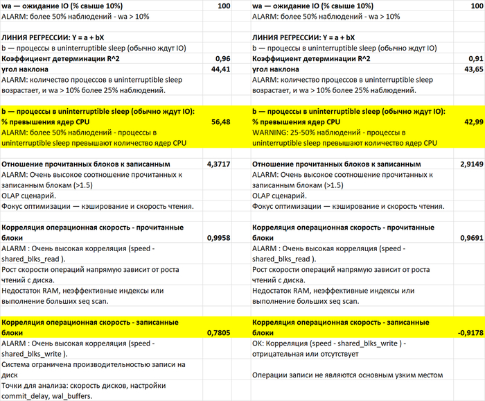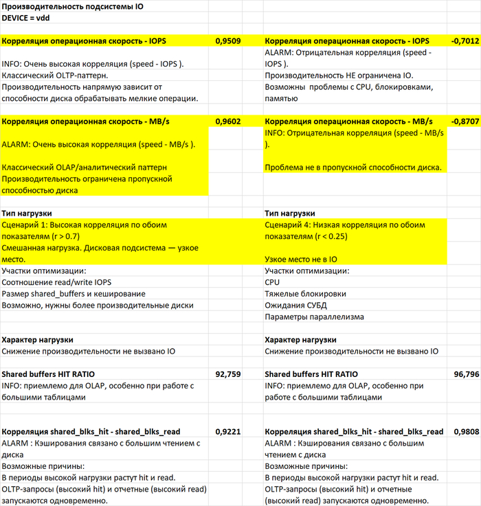 Ключевые отличия метрик vmstat, влияющих на итоговую производительность СУБД