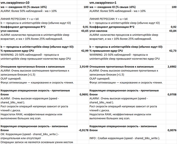 Анализ причин снижения производительности СУБД PostgreSQL после применения vm.swappiness = 1