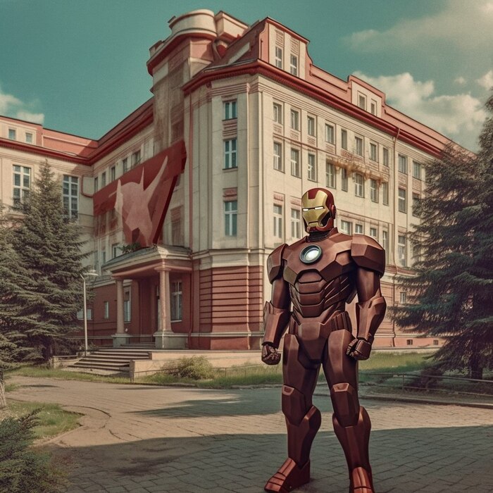 6 kolupaevyaroslav Midjourney Серия Супер герои Если бы Железный Человек родился в СССР 2 года назад Сгенерировано нейросетью Показать полностью 5 [моё] Юмор Нейронные сети Арты нейросетей Будущее Marvel Обои на рабочий стол Иллюстрации Мемы Персонажи Железный человек Длиннопост Ещё 0